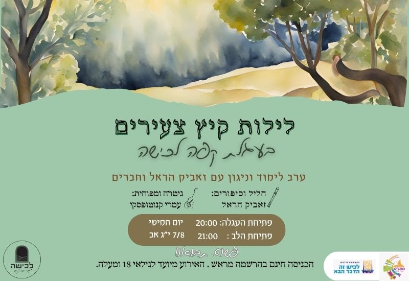 אירועים בלכישה לילות קיץ צעירים בלכישה ערב ניגון ולימוד בלכישה ערב לימוד וניגון תחת כיפת השמים עם זאביק הראל יובל תור 21/07/2025